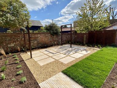 The home is a beautiful barn conversion, but the rear garden was a little unloved with some overgrown trees and shrubs, and a small, unstable concrete patio. It really wasn’t conducive to family living, or entertaining for extended family and friends.