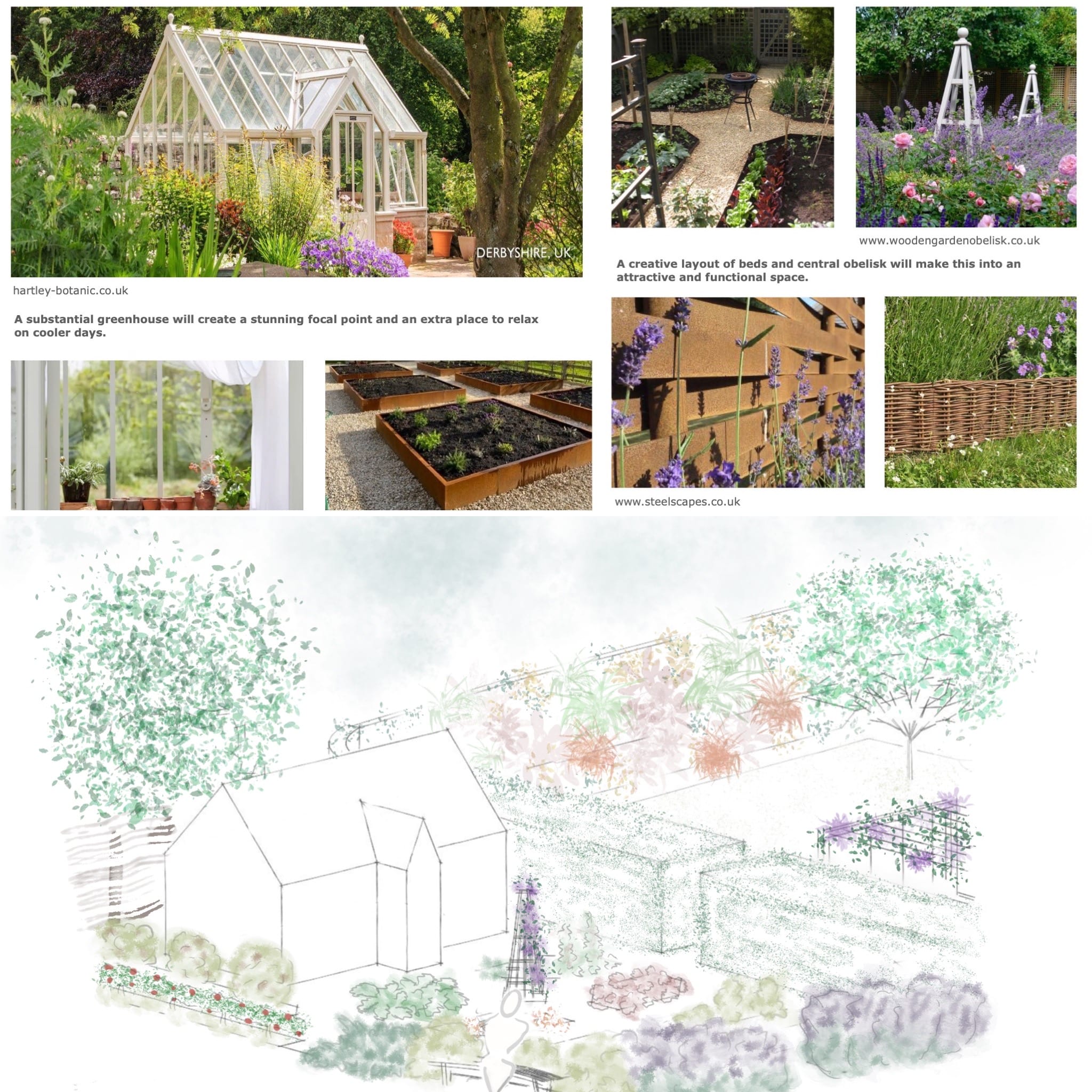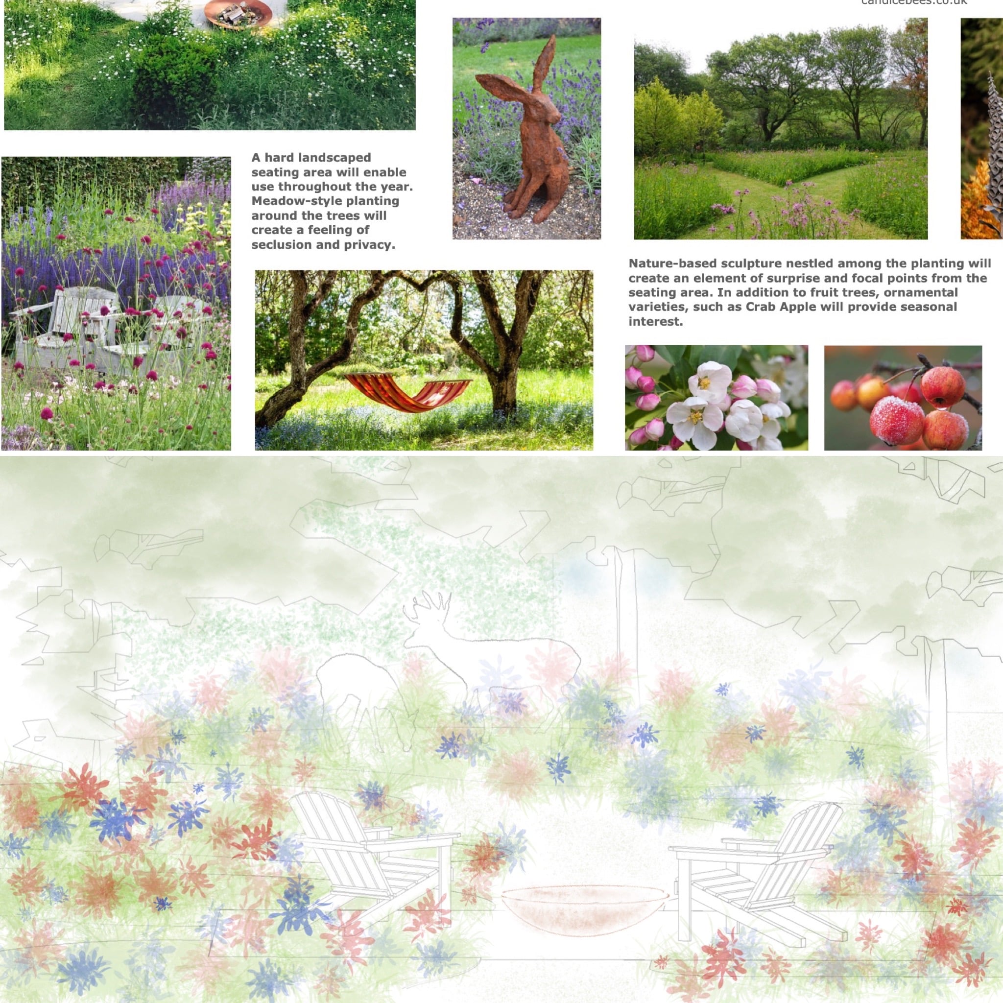 A mix of some formal areas for large-scale entertaining, as well as more naturalistic orchard meadow areas for more relaxed gatherings, and additionally provision for a large vegetable garden, will make this space multi-functional as well as beautiful.